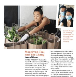 I’m beyond delighted to share that I have a story in the November 2020 issue of O: The Oprah Magazine. It’s bittersweet because the publication will cease its monthly print editions with the December 2020 issue. I am fortunate to have one last piece in the magazine about Heart of Dinner, a NYC Chinatown program that feeds Asian elders during the pandemic, in the “Beauty of Giving” section about change-makers who do good things in the world. (I’m also thrilled to be featured on the Contributors Page of the magazine, too!)